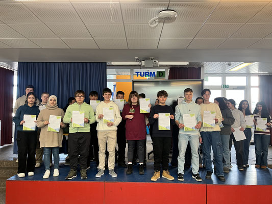 Am 28.01.2025 feierten wir den erfolgreichen Abschluss der „Herausforderung“ des 9. Jahrgangs. Zum ersten Mal waren über 30 Schülerinnen und Schüler bis zu 10 Tage lang unterwegs, um sich ihren persönlichen Herausforderungen zu stellen. In diesem Jahr gab es eine bunte Mischung aus sportlichen und kreativen Projekten: Einige wanderten, paddelten oder radelten – manche lernten sogar erst das Radfahren. Andere stellten sich kreativen Aufgaben wie dem Schreiben eines Songs oder dem Programmieren eines Escape-Room-Spiels. Wir gratulieren allen Schülerinnen und Schülern herzlich zum erfolgreichen Abschluss ihrer Herausforderung! Ein großer Dank geht auch an die Eltern für ihr Vertrauen, an die Begleitpersonen für ihre Zeit und an alle Partner, die dieses Projekt unterstützt haben. Bereits jetzt freuen wir uns auf die nächste „Herausforderungsrunde“ im Sommer 2025 mit dem aktuellen Jahrgang 8. Besonders erfreulich ist, dass sich auch einige Schülerinnen und Schüler des Jahrgangs 9 erneut einer Herausforderung stellen möchten. Wir sind stolz auf alle Teilnehmenden und gespannt auf die nächsten Abenteuer!
