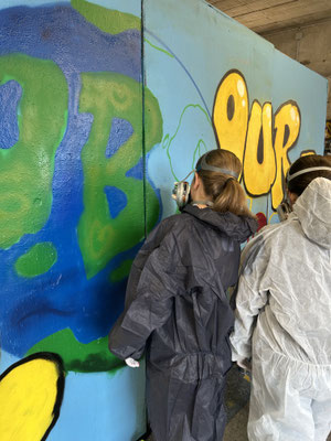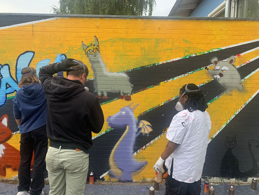 Ein rundum gelungener Workshop, alle hatten ihren Spaß und sowohl ihren persönlichen als auch den Erfolg eines gemeinsamen Graffiti.