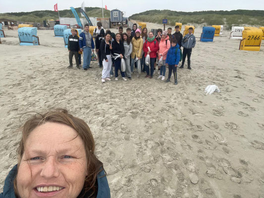 Donnerstag war dann die Stadt-Rallye, nun kennen wir uns in Juist ganz gut aus. Dann haben wir noch auf dem Hin- und Rückweg alle am Strand Müll gesammelt.