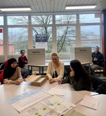 Die Schülerinnen und Schüler haben sich über die verschiedenen politischen Parteien, deren Programme informiert und Diskussionen geführt. Das Wahlkomitee, bestehend aus Schüler/innen, haben die Wahl organisiert, die Wahlkabinen vorbereitet und für einen reibungslosen Ablauf und faire Wahlen gesorgt. Die Ergebnisse der Juniorwahl werden am selben Tag wie die offiziellen Bundestagswahlergebnisse bekannt gegeben. Wir sind gespannt auf die Ergebnisse.