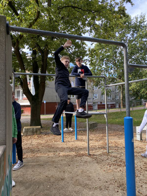 Kurz vor den Herbstferien war die 8.1 & 8.4 mit Herrn Grätz, Herrn Pape & Frau Koop im Parkour-Park in Garbsen, und hat den Sportunterricht ins Freie verlegt. Es war ein richtig toller Vormittag und die Kids sind zum Teil über sich hinaus gewachsen!