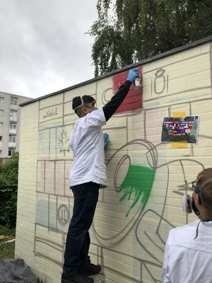 Shalin schreibt dazu: „Graffiti ist nicht nur an die Wand sprayen, man lernt hier auch, was Graffiti überhaupt ist“.