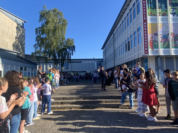 Am Montag den 12.08.24 haben sich ca. 40 Schülerinnen und Schüler des 9. Jahrgangs gutgelaunt und bei strahlendem Sonnenschein auf den Weg gemacht, um ihre persönliche Herausforderung zu meistern. Verabschiedet wurden sie feierlich von der ganzen Schulgemeinschaft mit einem Spalier.